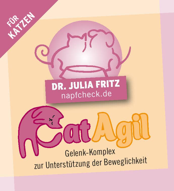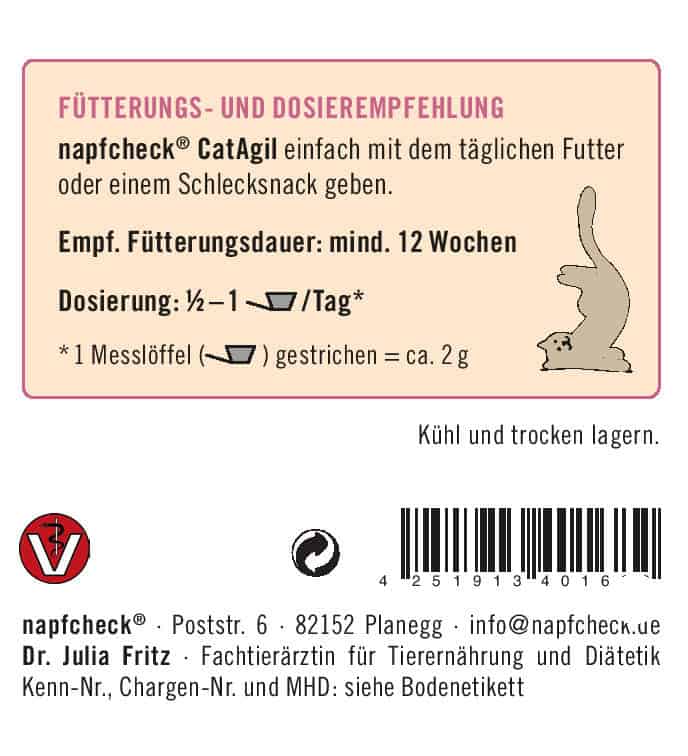 Fütterungsempfehlung: napfcheck CatAgil einfach mit dem täglichen Futter oder einem Schlecksnack geben.