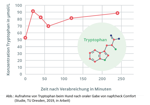 Entwickelt haben wir unsere napfcheck Relax Tabs in Kooperation mit einem Forscherteam aus dem Institut für Lebensmittelchemie der Technischen Universität Dresden (Peptrition GmbH, ausgegründet). Für unser Produkt nutzen wir hochwertige Eiweißbestandteile der Molke, die durch ein spezielles Verfahren gewonnen werden. Maßgeblich für die hohe Qualität ist der außergewöhnlich hohe Gehalt an der essentiellen Aminosäure Tryptophan.